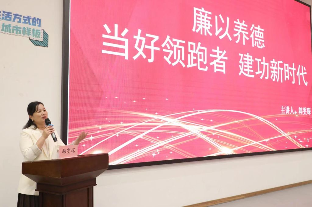 最后,院党委副书记韩雯琛以“廉以养德,当好领跑者,建功新时代”为主题给全体预备党员上廉洁主题党课。