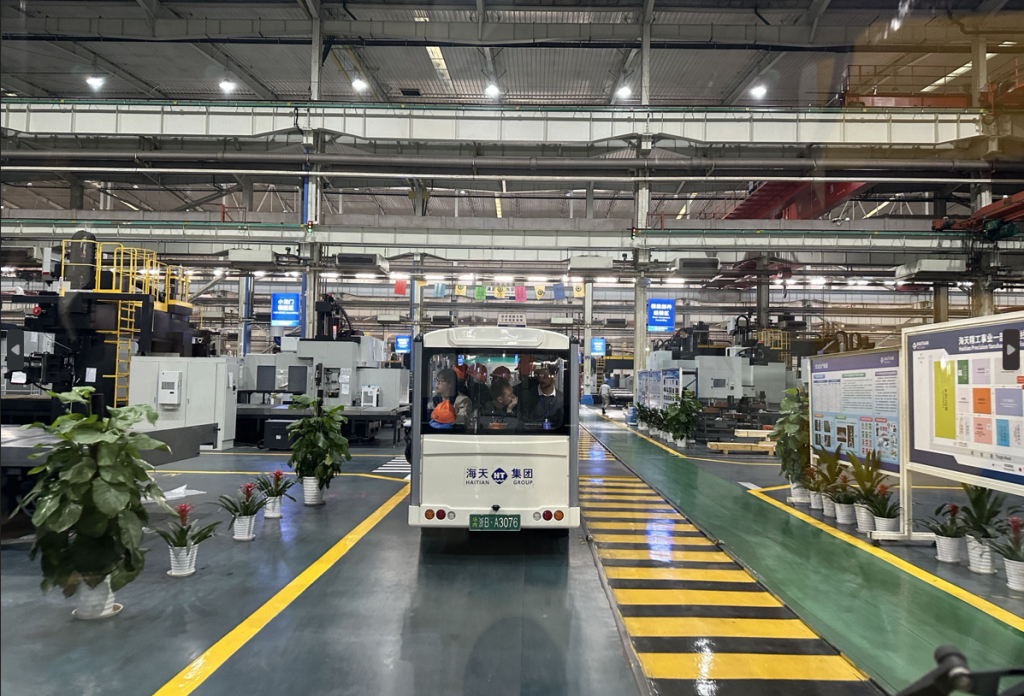 首站是海天国际。在工作人员的介绍下,众人了解了海天国际的品牌故事与发展历程。1966年,海天从其前身棉花农机厂小作坊起步,历经五十余年发展,逐步成长为当前的集团公司、塑料机械领域国际领先的企业。通过宣传视频、展厅参观、车间参观,众人对企业展开进一步了解。海天国际正努力打造全连接管理平台(依托新一代信息技术,打造全流程在线化客户服务模式)、做好售前、售中、售后等全方位服务。依托该管理平台,当前,海天已完成在南美、欧洲、南亚等全球多个地区的产业布局。伴随企业规模扩大,海天的菠菜网站建设亦不断升级,逐步形成了人本、成本及规模化资本三本理念,并努力打造“家”文化,令员工能快乐工作,快乐生活。在后续座谈中,校企双方对海天国际目前取得的成就、所面临的挑战与机遇进行了深入探讨。