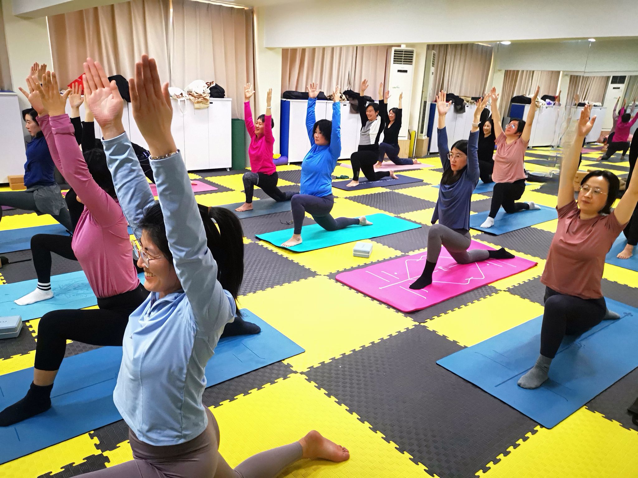 本次瑜伽训练营在工作群刚刚发布,就有四十余名女教工积极报名。瑜伽训练既能减轻女教工的工作生活压力,又能普及健康知识,大大激发了女老师们的锻炼潜能,愉悦身心健康。