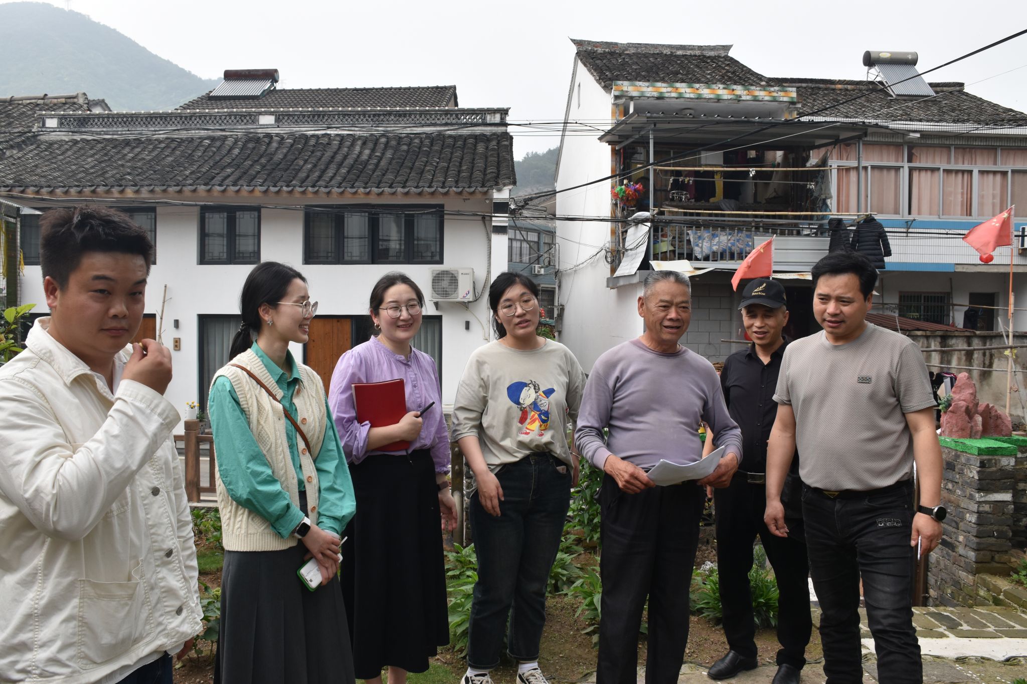 分团委书记陶含怡、工商信管团队负责人周双双、辅导员应张磊、宋辉,调研村所在街道、村负责同志陪同调研。