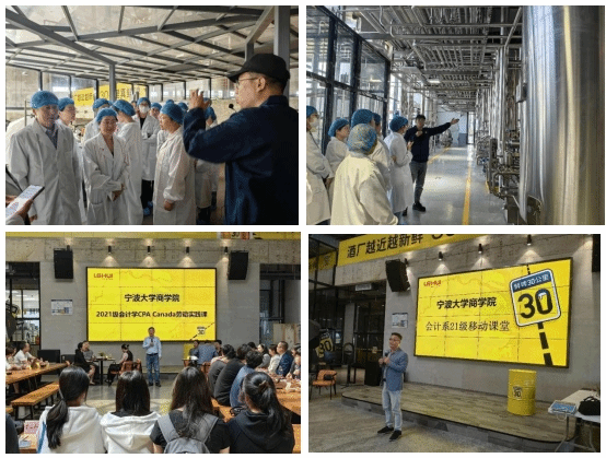 欢迎仪式结束后,全体人员参观了乐惠鲜啤三十公里城市酒厂,详细了解工厂的生产状况,并结合本专业知识对工厂的供应链管理,成本管控等情况进行梳理和分析。全体合影后,象山县财政局郑世敏副局长致辞,郑局长对活动的举行表示祝贺,鼓励师生和企业通过活动实现共赢,并欢迎同学们在毕业后来象山生活和工作。其后,来自三家企业的财务负责人分别从“时间轴看成本管控”、“阿米巴业财融合”“财务人转型”等三个角度现场为同学们上了三节别开生面的微课,参会的宁波大学创业导师忻志伟也为有志于创业的同学送上了创业导论。老师们扎实的专业功底,紧贴实际的相关分析让同学们受益匪浅。