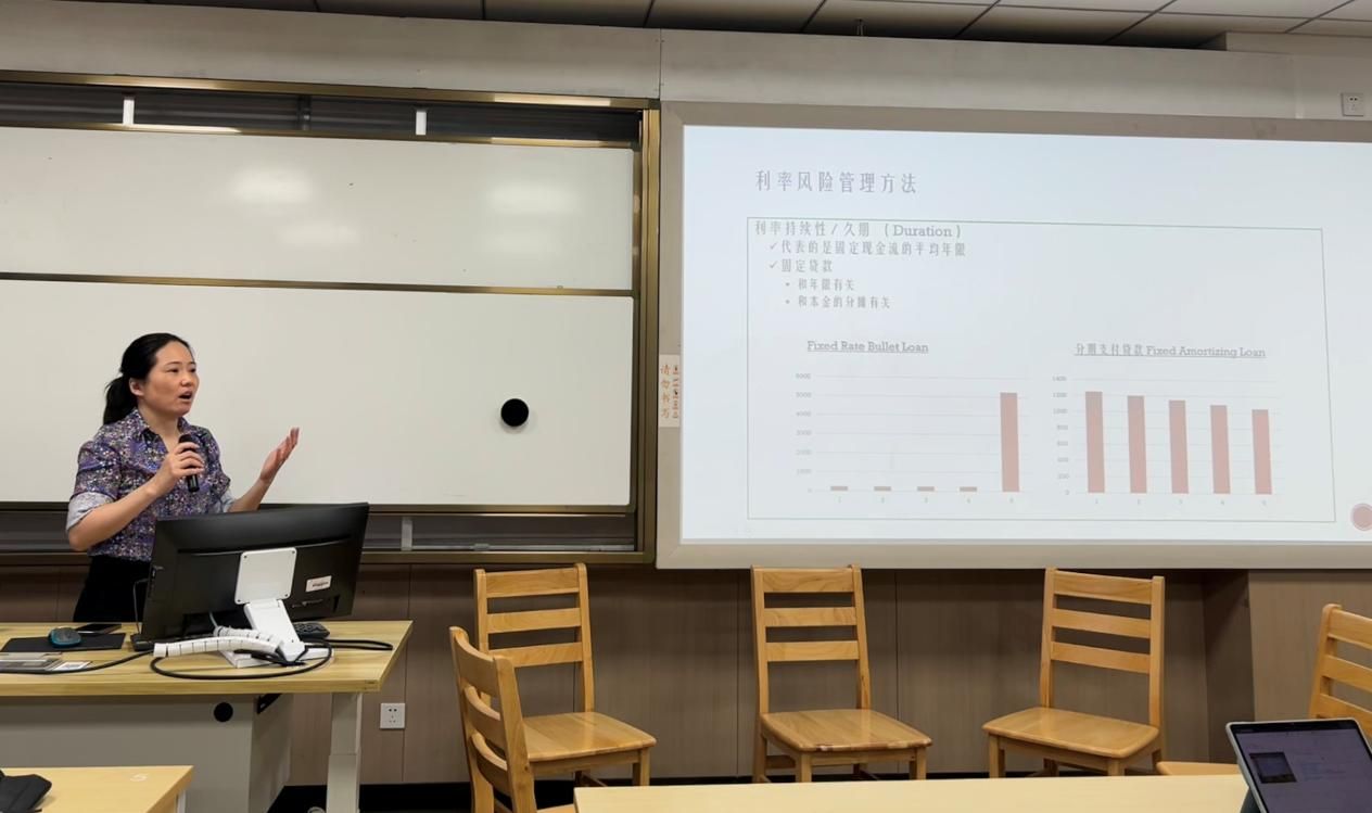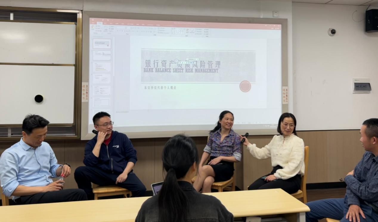 金融系在4号教学楼203教室成功举办主题为“北美传统银行资产负债风险管理”的学术沙龙。本次活动由金融系丁树声博士主持,特邀嘉宾为加拿大多伦多道明银行资金负债部门高级经理Jennie Wang。金融系邱波教授、朱一鸿副教授、余新平博士等教师和部分金融专硕研究生及金融学本科生50余人参加。