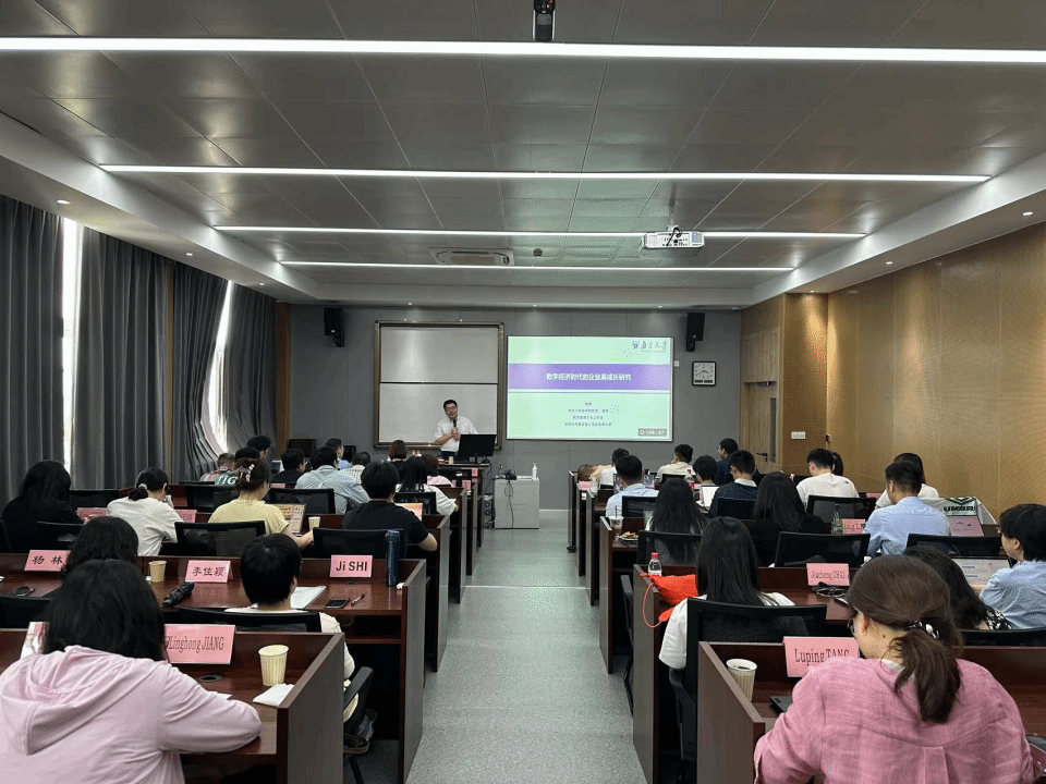 此次讲座,张骁教授首先从研究背景切入,阐释了在数字经济时代下,大量市场机会快速涌现,用户需求迭代更新快,企业必须持续调整资源基础以把握新发展机会。探讨企业高成长问题对于企业管理、新质生产力的形成及国家经济高质量发展都具有非常重要的意义。在研究“企业应如何把握用户需求快速迭代所带来的机会实现自身的高成长”这个问题上,张教授以(2021)南京市成长型企业第一名——嘉数网络为典型,分享了其适时调整战略决策,合理把握战略节奏,实现快速成长获取成功的案例。