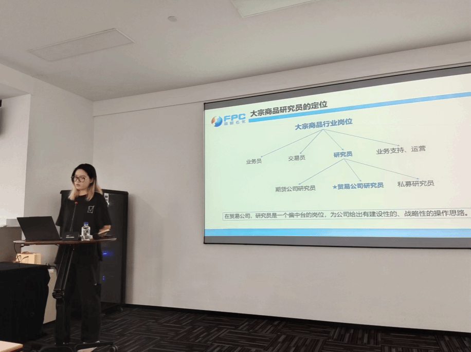 随后,林婷婷介绍了公司各个岗位的职能分工及业务要求。前程石化作为大宗商品贸易行业的龙头企业,对大宗商品定价和价格风险管理异常重视,金融专业岗位在石化行业龙头企业的市场需求越来越强烈。随后,同学们利用积累到的金融专业课程学习基础,以前程石化主要化工产品价格波动为实际场景,运用大宗商品定价的理论框架,综合期货和其他金融衍生品等多种风险管理模式,实地了解和体验了宁波大宗商品贸易名企的核心研投、交易、渠道管理等岗位的工作流程。
