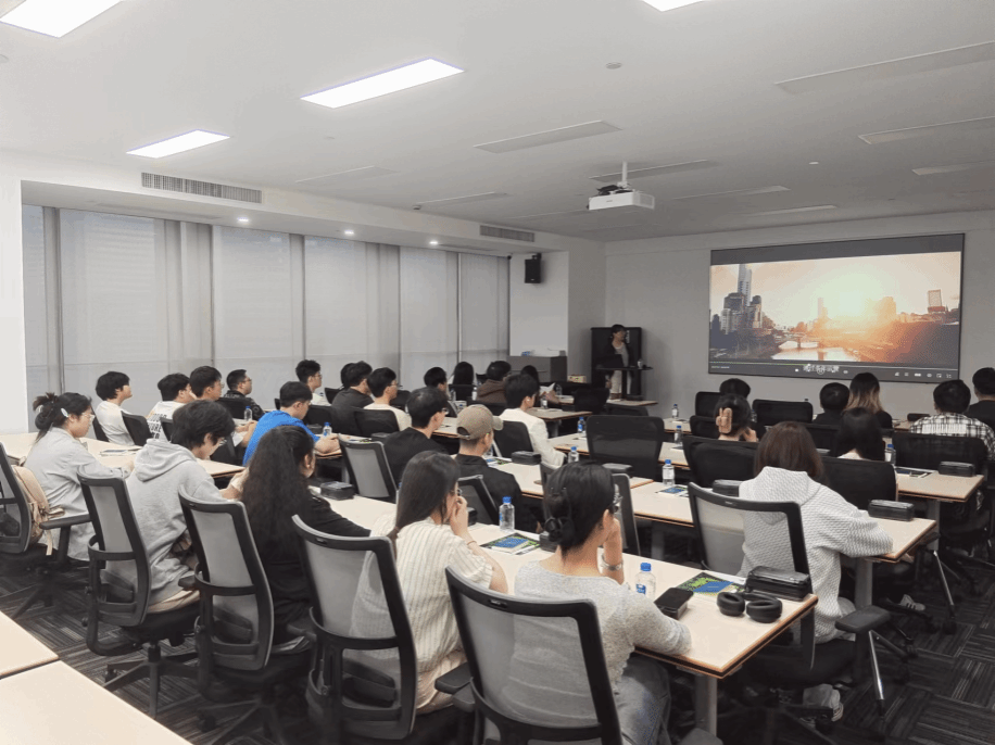 在参观完公司的整体环境后,全体师生前往会议室进行报告学习和座谈。会上首先由同样毕业于宁波大学的戴梦轩师姐向在场师生作关于大宗商品研究员定位的专题报告,介绍了大宗商品研究员的岗前准备工作和主要职责,以及期现业务主管在渠道业务和大宗商品研究员岗位上的工作内容,使在场师生对工作要求和工作内容有了基本了解。
