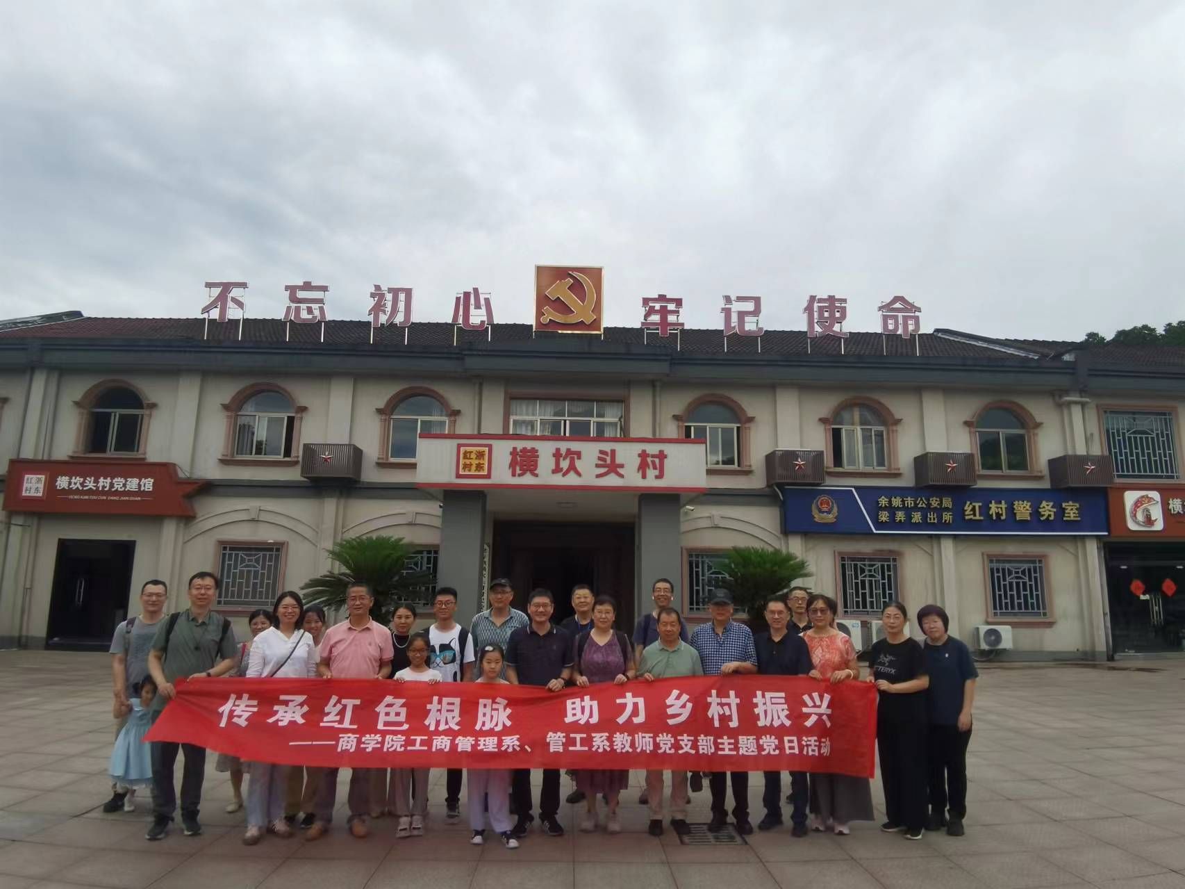工商管理系、管理科学与工程系教师党支部于6月29日、30日组织支部全体党员前往余姚梁弄镇横坎头村联合开展主题党日活动。这次活动不仅是对革命先烈的缅怀和致敬,更是一次深刻的党性教育和爱国主义教育,旨在通过参观学习,增强历史使命感和责任感,激励全体党员在教学和工作中传承和弘扬红色革命精神。