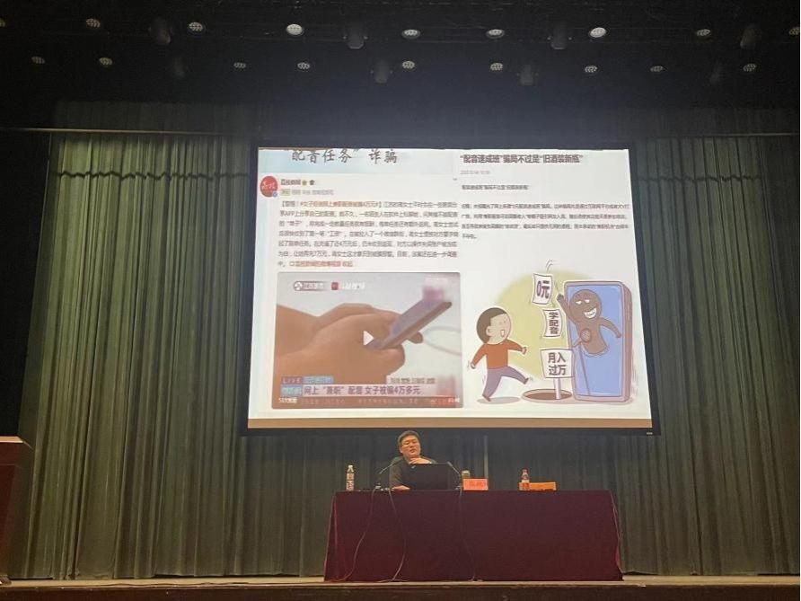 刑法教研室主任张弛博士到校开展以“生活中的诈骗手法与法律防范”为题的专题宣讲。学工办各辅导员、300余名2023级阳明分流新生参加。讲座由菠菜网站