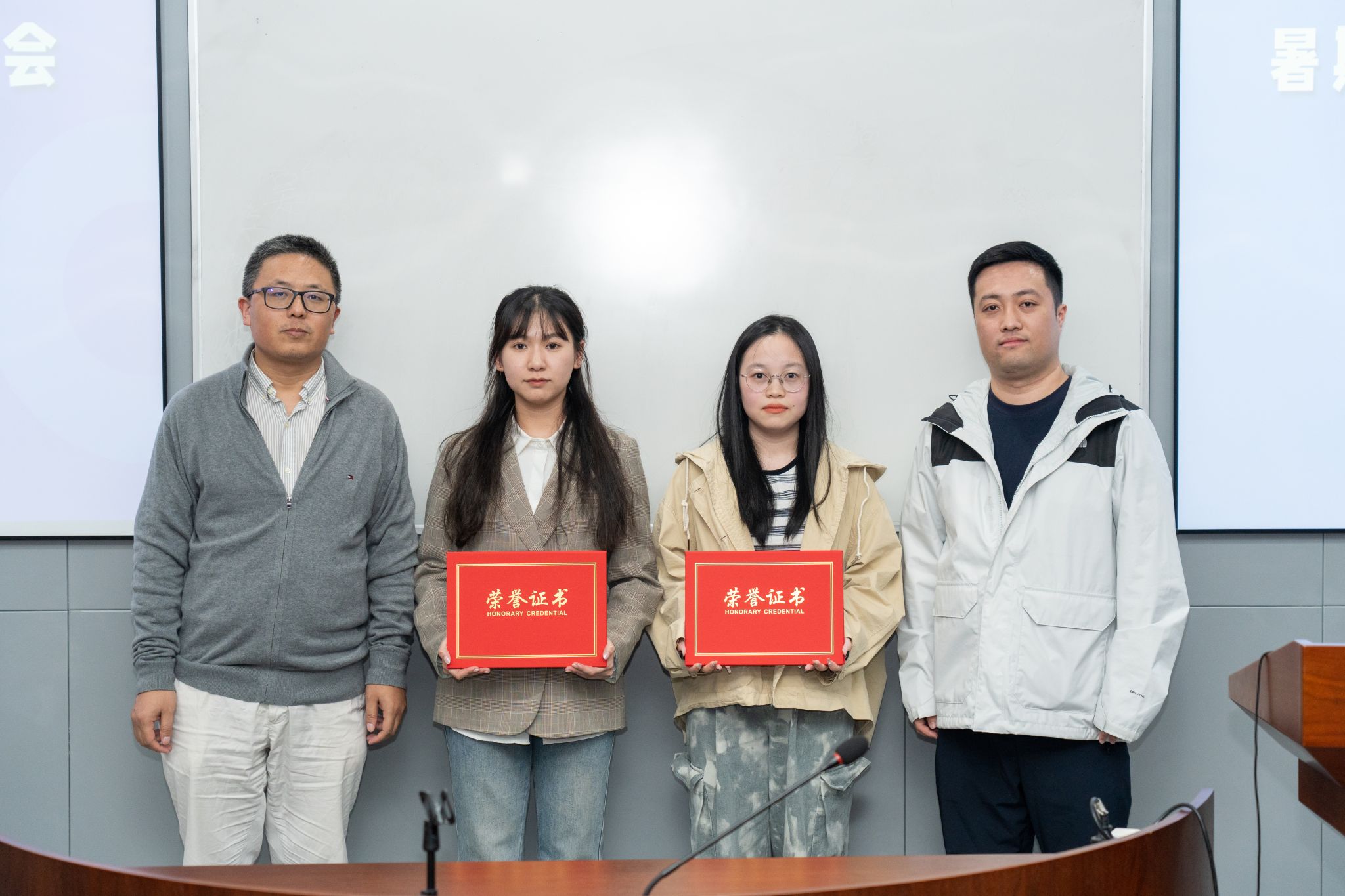 谢慧明教授宣布了比赛结果,本次社会调查活动评选出一等奖1名、二等奖2名、三等奖3名。金祥荣院长和评委专家分别为获奖团队颁发证书。