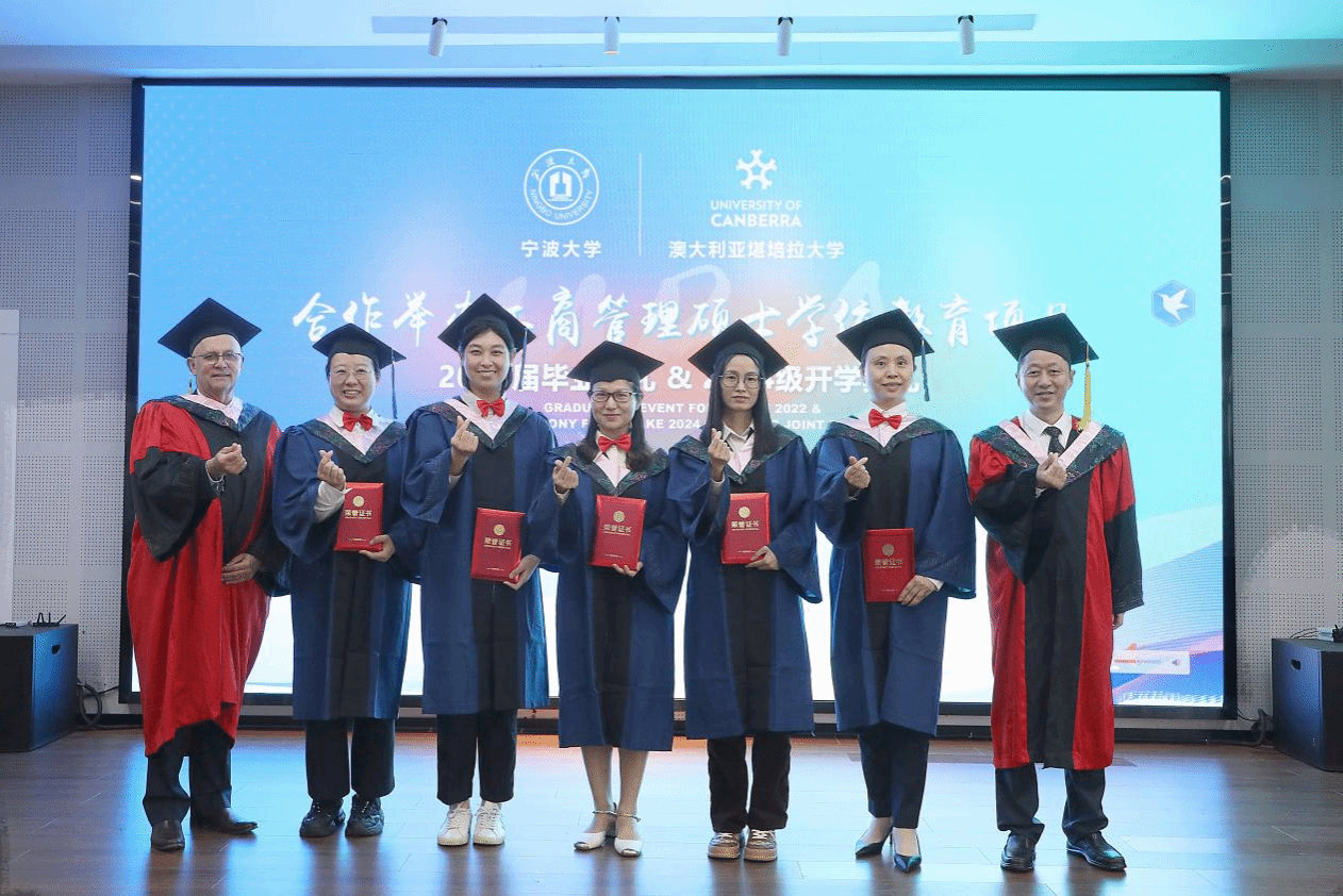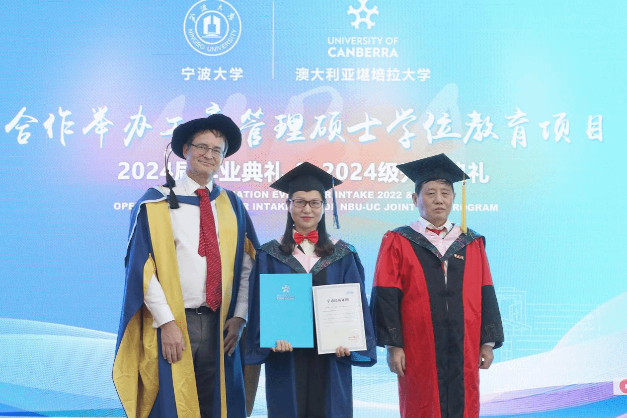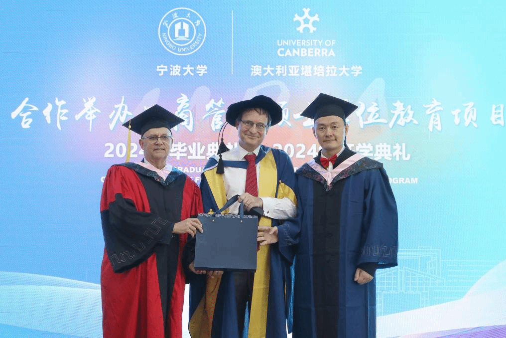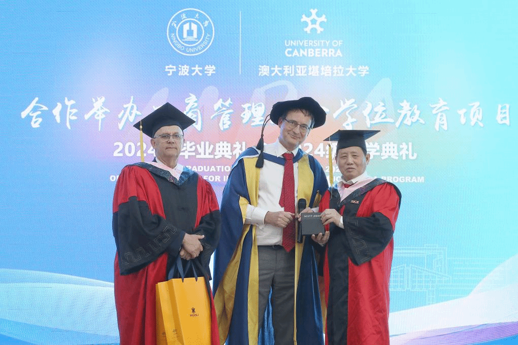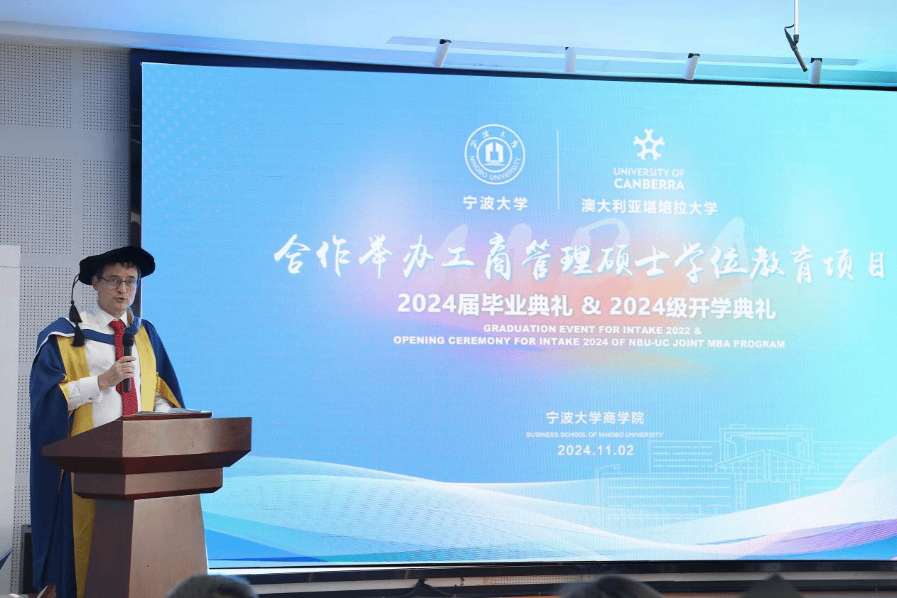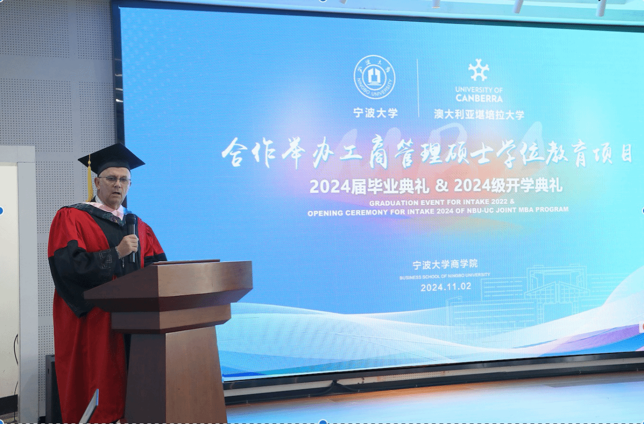 长久以来的良好合作,共同培养了多届优秀管理人才。他感谢所有毕业生的努力,称赞他们在学业上展现出的坚韧与毅力。他指出,尽管毕业生在学习中经历了不小的挑战,但最终以出色的成绩完成了学业,达到了个人新的发展里程碑,希望毕业生们珍惜在学业中建立的友谊,并将其作为未来专业发展的宝贵资源。他邀请所有毕业生加入堪培拉大学校友会,成为堪培拉大学及其与宁波大学合作关系的“全球大使”。