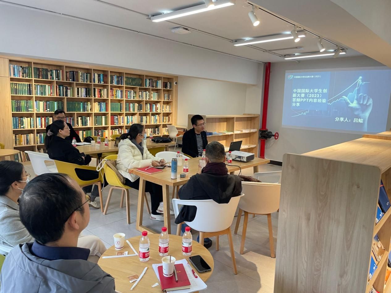 管工系教师,20信管班班主任吕鲲老师分享大学生创业类竞赛指导经验。学工办主任陈彬主持沙龙。