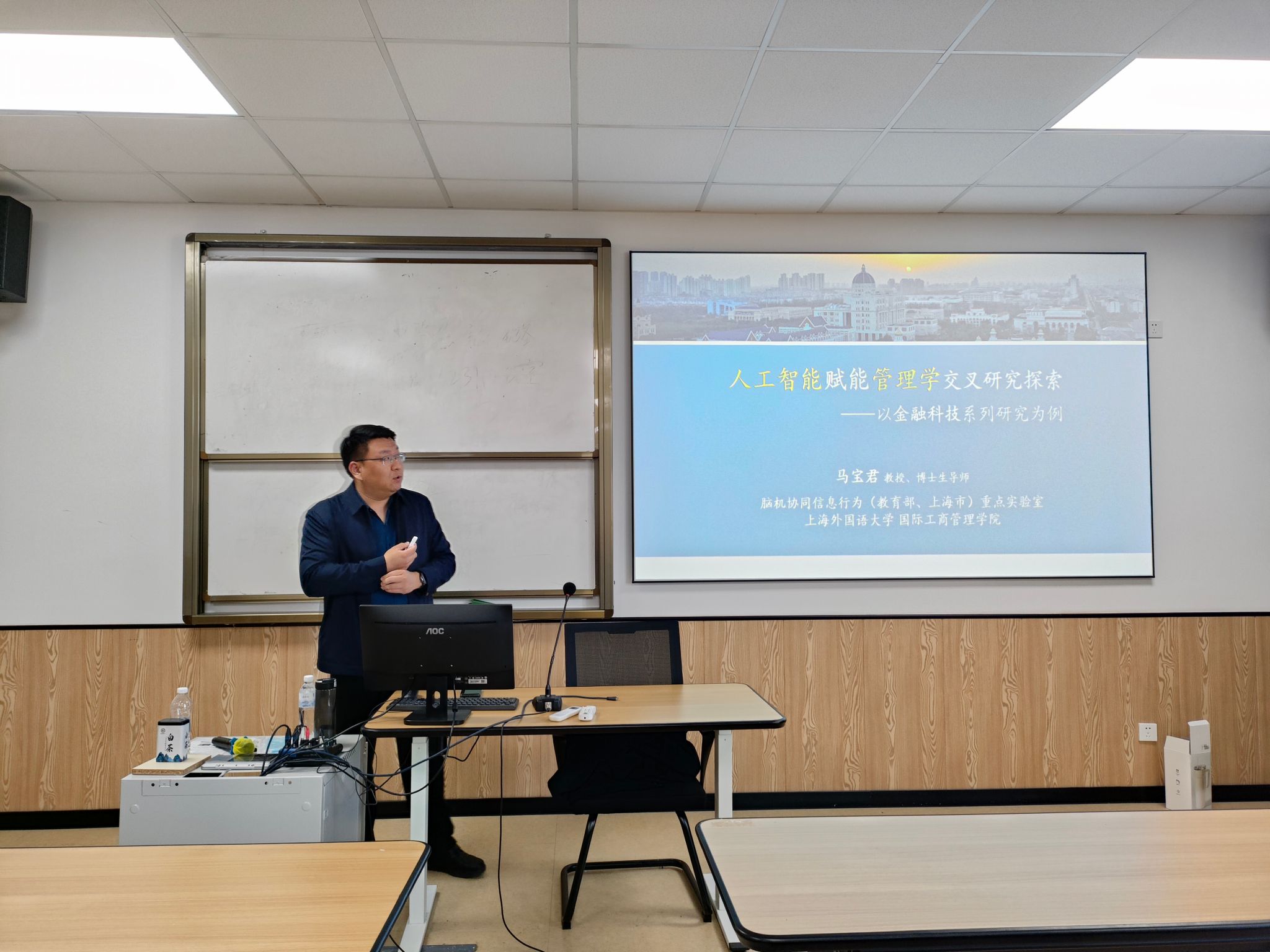 韩明华教授首先对马宝君教授的到来表示热烈的欢迎和感谢,并对马宝君教授进行了隆重介绍。马宝君教授长期致力于发展人工智能、数据科学推动管理学研究的交叉融合,聚焦提升大数据资源的“智能发现能力”与“智能使用能力”。主持教育部中央高校优秀青年团队项目(培育建设)、国家自然科学基金面上项目(2项)及青年项目等;近年来在包括UTD24十大菠菜网站