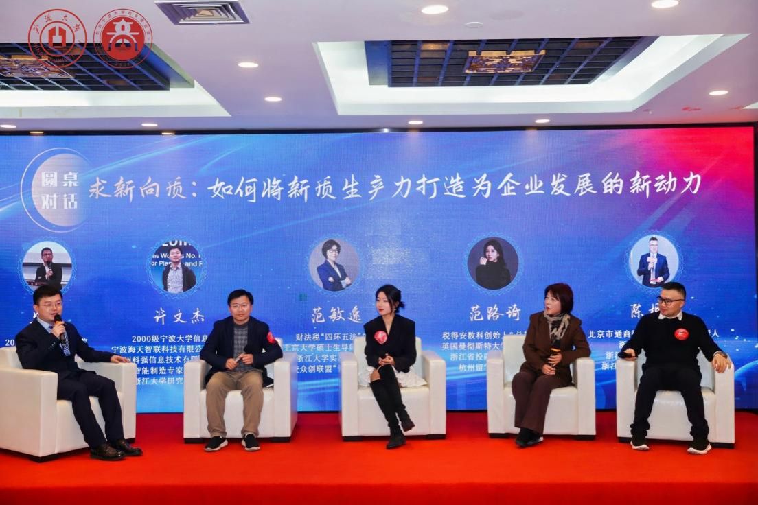 短暂的休息过后,是精彩的圆桌对话。圆桌论坛由民生证券投行部副总裁郑锋主持,来自不同领域的思想领袖和实践者,包括杭州科强信息技术有限公司总经理许文杰、财法税“四环五法”先导范敏逸、税得安数科创始人范路琦、北京市通商律师事务所杭州办负责人陈相瑜受邀参加。他们从各自的专业角度出发,分享独到的见解和经验,为与会人员带来了一场思想的盛宴。