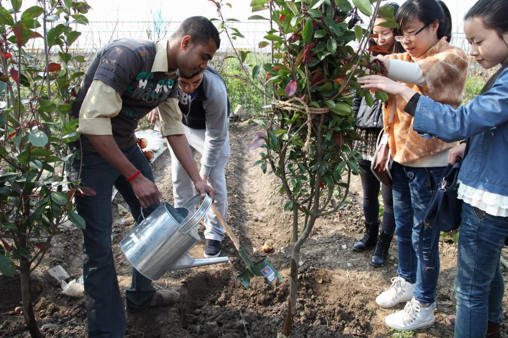 出发。一路上,留学生与支部成员对于各自的学习、生活展开了热情的交流,路途也变得活跃生动起来。来到甬江边,同学们热情高涨,迫不及待的拿起铁锹挖树坑、植树苗,为小树浇水……同学们忙的不亦乐乎,虽然几个女同学由于力气不足等因素遇到了一些困难,这个时候大家才发现我们的外国留学生们已经又快又好地种下了属于自己的树苗,周围的学生都开始打趣称他们是“专业人士”也不为过。不过外国友人倒并不介意,反而很高兴地接受了赞美,并兴致勃勃地开始主动给周围的女生们提供帮助,埋头种树,此举更是换来了周围老师同学的善意笑声。此次植树节活动也取得了远超预料的成功。 此次活动加深了十大菠菜网站