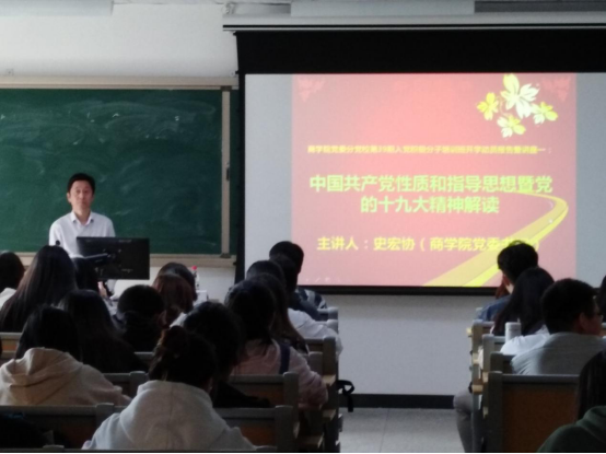 党委书记史宏协作了开班动员,并为全体入党积极分子上了题为《中国共产党性质和指导思想暨党的十九大精神解读》的首堂讲课。