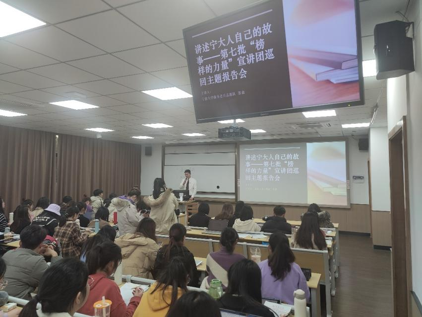接着,宁波大学服务老兵志愿队成员张森作主题为《红色深情梦 吾侪服务行》的讲座。张森和大家分享了多名参加过各种战役的老兵,这些老兵们在战争时英勇奋战,在战争后依然坚守在为人民服务的一线岗位,为祖国和人民贡献出自己的力量。与此同时,张森也和大家介绍了宁波大学服务老兵志愿队,他们搜寻了老兵们的英勇事迹,展开宣讲活动,将老兵的事迹分享给更多的人。最后,张森鼓励预备党员们努力学习,为实现中华民族伟大复兴而奋斗。