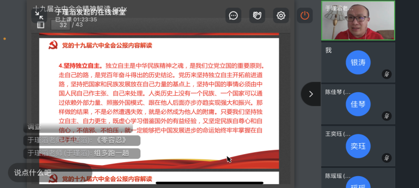 党委分党校第46期预备党员培训班于线上举办了主题为《十九届六中全会精神解读》和《共同富裕》的党校课程。本次党课分别邀请会计系教师于瑾滔和经济系教师余璇担任主讲老师,菠菜网站