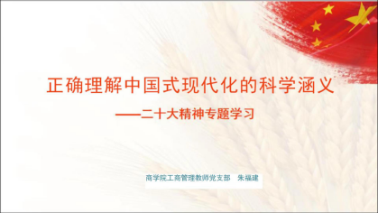工商管理系、管工系教师党支部联合开展主题党日活动,专题学习党的二十大精神。本次学习采取线上形式进行,由院纪委委员、工商系教师党支部副书记朱福建上专题党课,院党委委员、协理副院长朱一鸿和两个支部共三十余名教师党员参加。