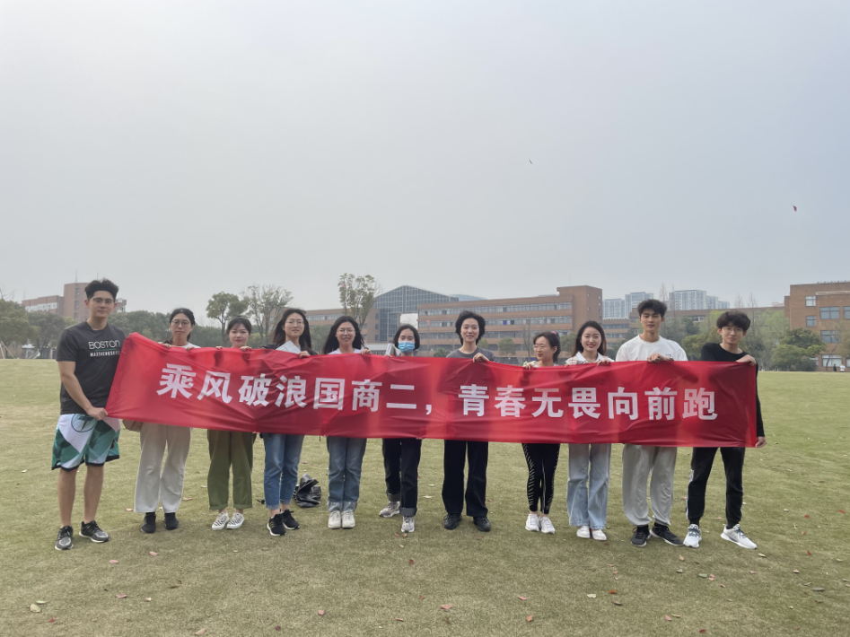 国际商务专业研究生第二党支部在大草坪上举行“乘风破浪国商二,青春无畏向前跑”趣味校园跑活动,此次活动共有12名支部同学参加。