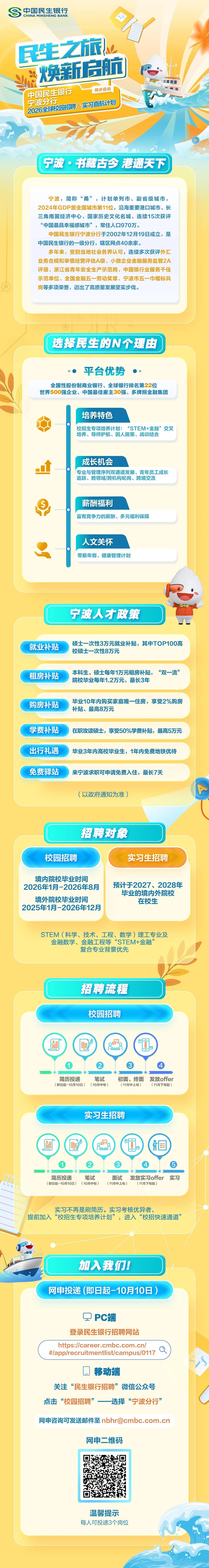 中国民生银行宁波分行校园招聘简章(含实习生)