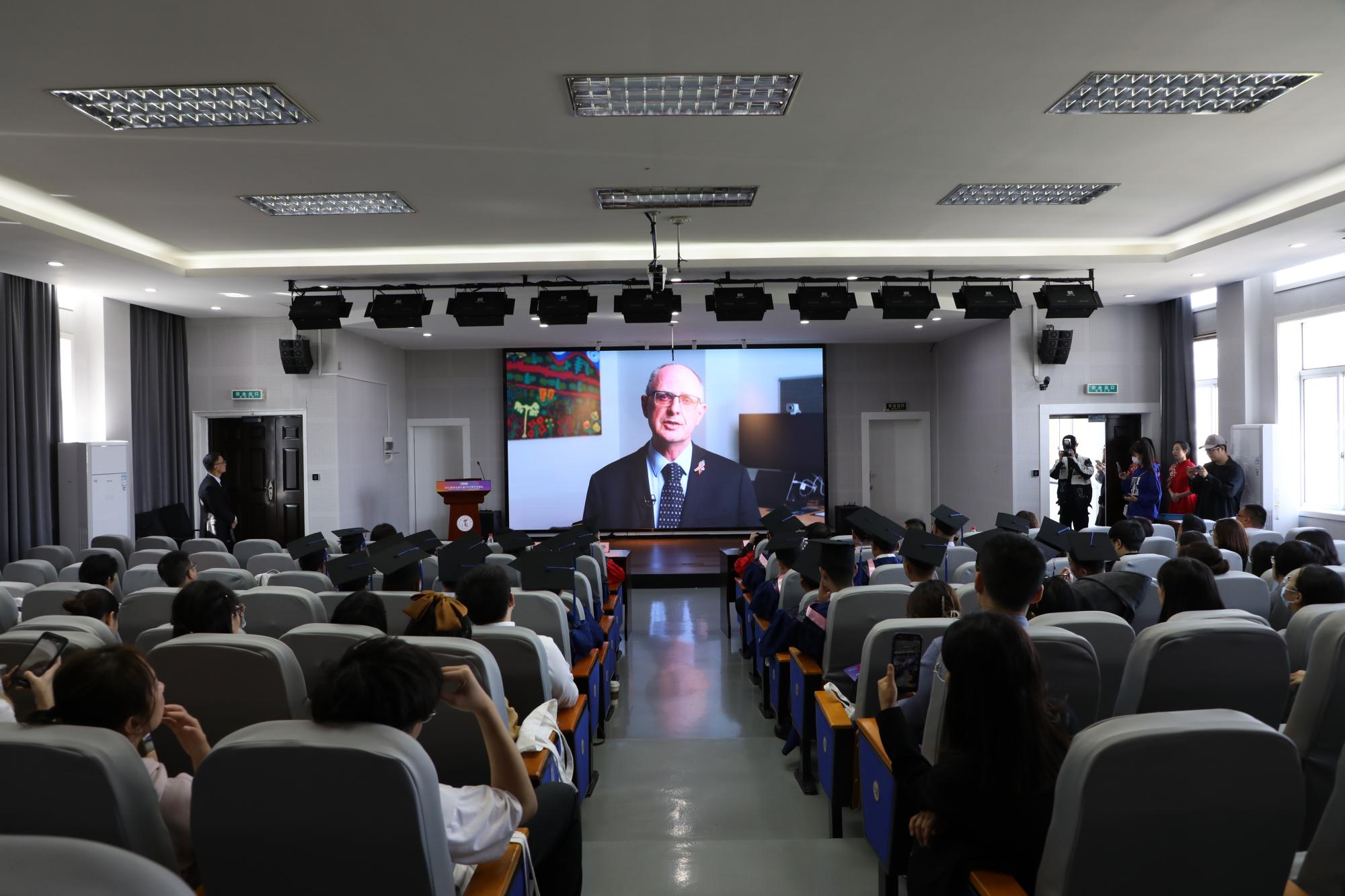 特殊时期,澳大利亚堪培拉大学的教学副校长Geoff Crisp教授再次以视频方式向现场学员们表示祝贺并送上祝福。他和堪培拉大学相关团队所有成员都为宁波中澳MBA项目学员在疫情期间克服种种困难,最终成功完成学业感到由衷自豪,他感谢两校团队的专业、努力与辛勤付出,同时也高度赞誉了宁波大学和澳大利亚堪培拉大学通过中澳MBA项目所建立起的深远、坚固的友谊。澳大利亚堪培拉大学是一所年轻但充满活力的大学,致力于研究型和应用型教学,目前全球综合排名已晋升至前1%,且位于“全球建校50周年以下大学排行榜”前20位。从澳大利亚堪培拉大学的硕士项目毕业,对所有毕业生来说,都是一种荣耀,它不仅只意味着一张高质量教育文凭,还意味着成为全球颇具影响力的商业、政府和社群校友组织的一员。他热忱欢迎宁大中澳MBA项目的毕业生加入堪培拉大学的校友会,向未来构建国际化发展人际网络迈出新的一步。