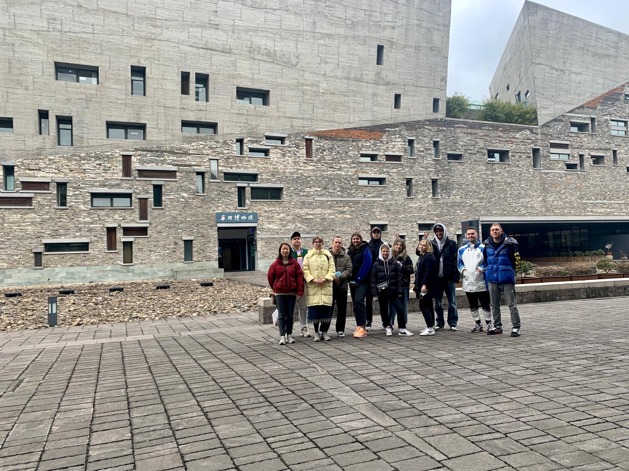 过不多久,师生一行抵达宁波博物馆。俄罗斯同学井然有序地配合现场管理人员进行入馆登记,随后开始游览宁波博物馆。