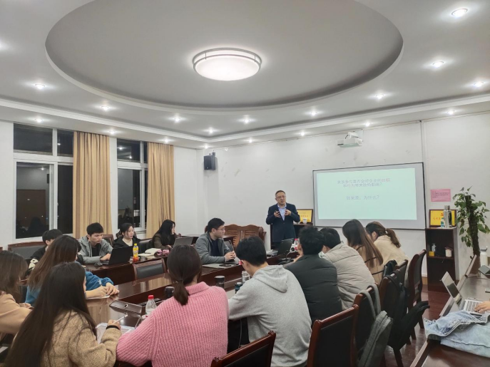 学术讲座邀请了宁波诺丁汉大学周是今(Steven Zhou)副教授做了题为“由个人到天下——社会情感财富(Social and Emotional Wealth, SEW)理论重构”的报告,工商管理一级学科带头人彭新敏教授主持。