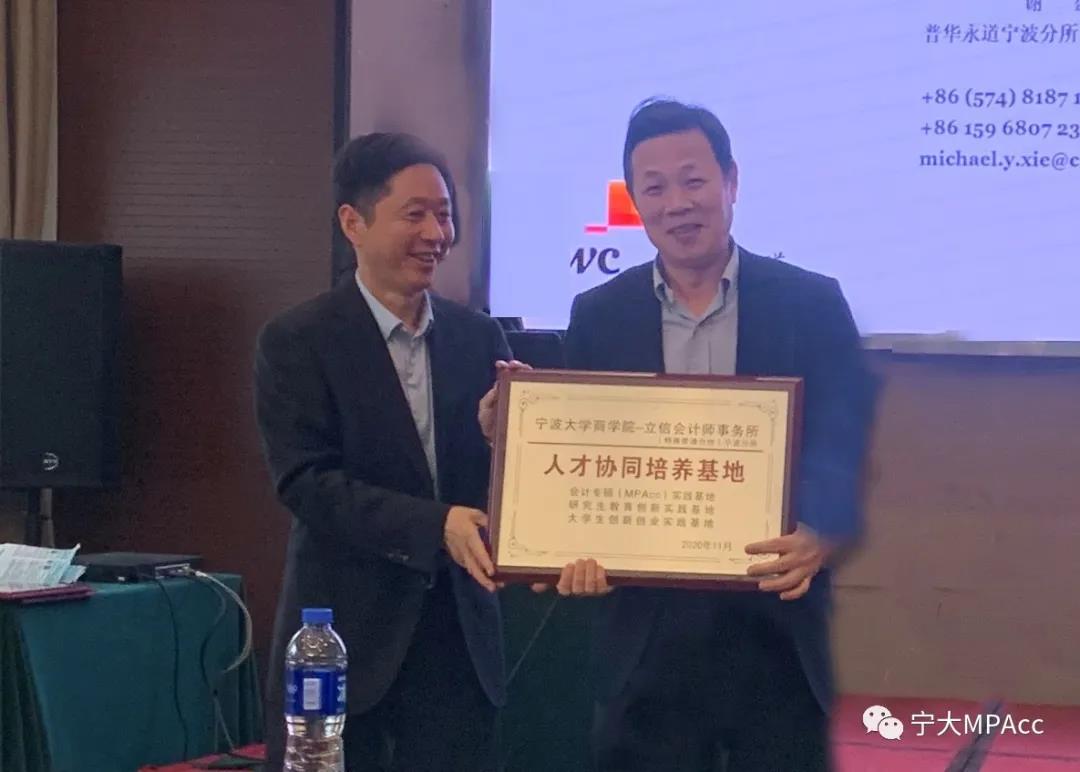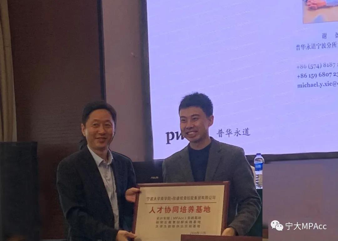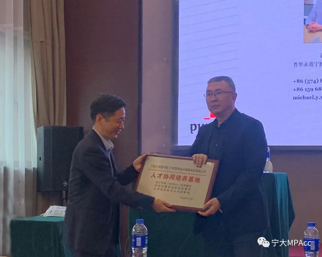人才协同培养基地、宁波大学MPAcc实践基地牌匾。未来各方将积极促进产学研合作,推动企业、院校协同发展。