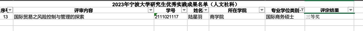 MIB学生获评校2023年专业学位研究生优秀实践成果奖