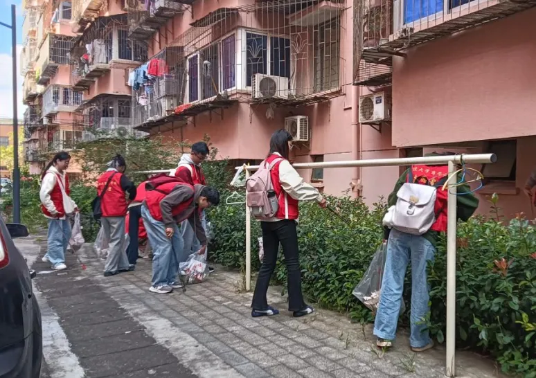 在清理过程中,学生党员们还积极向社区居民宣传环保知识、倡导文明行为。大家以行动为号召,以真诚作引领,鼓励居民共同爱护环境、共建美丽家园。居民们纷纷为这群充满活力的青年点赞,表示将从自身做起,为守护社区的整洁与美丽贡献一份心力。