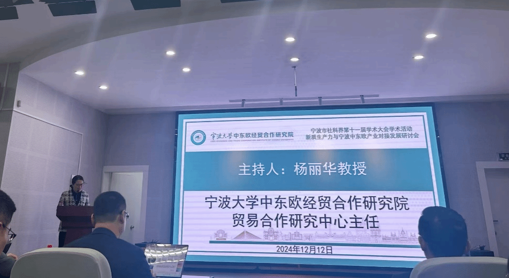在会议现场,气氛庄重而热烈。在宁波大学中东欧经贸合作研究院贸易合作研究中心主任、MIB学位点负责人杨丽华教授的主持下,会议有序拉开帷幕。首先,宁波大学中东欧经贸合作研究院副院长杨丹萍教授热情洋溢地致欢迎辞,并对中东欧经贸合作研究院的整体架构、研究领域以及取得的成果进行了全面而细致的介绍,使在场的每一位听众都对研究院有了清晰而深入的认识,也为后续的研讨奠定了坚实的基础。