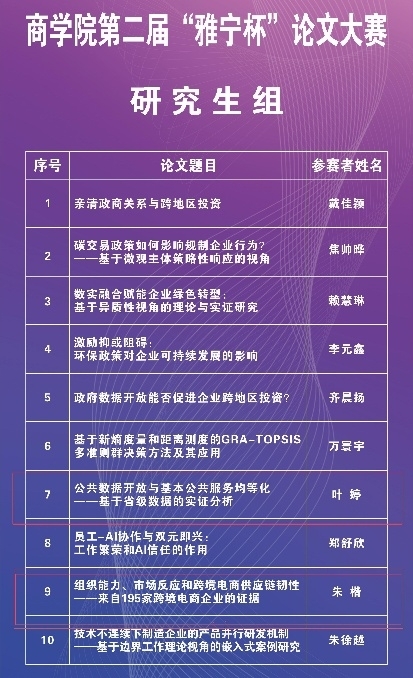 “以研促教、产教融合”的育人理念。参赛论文紧扣国家战略与行业前沿,体现了青年学子对社会经济的敏锐洞察与务实探索。第二届“雅宁杯”论文大赛圆满落幕,期待更多学子在学术征途上破浪前行,以智慧之光点亮创新未来。