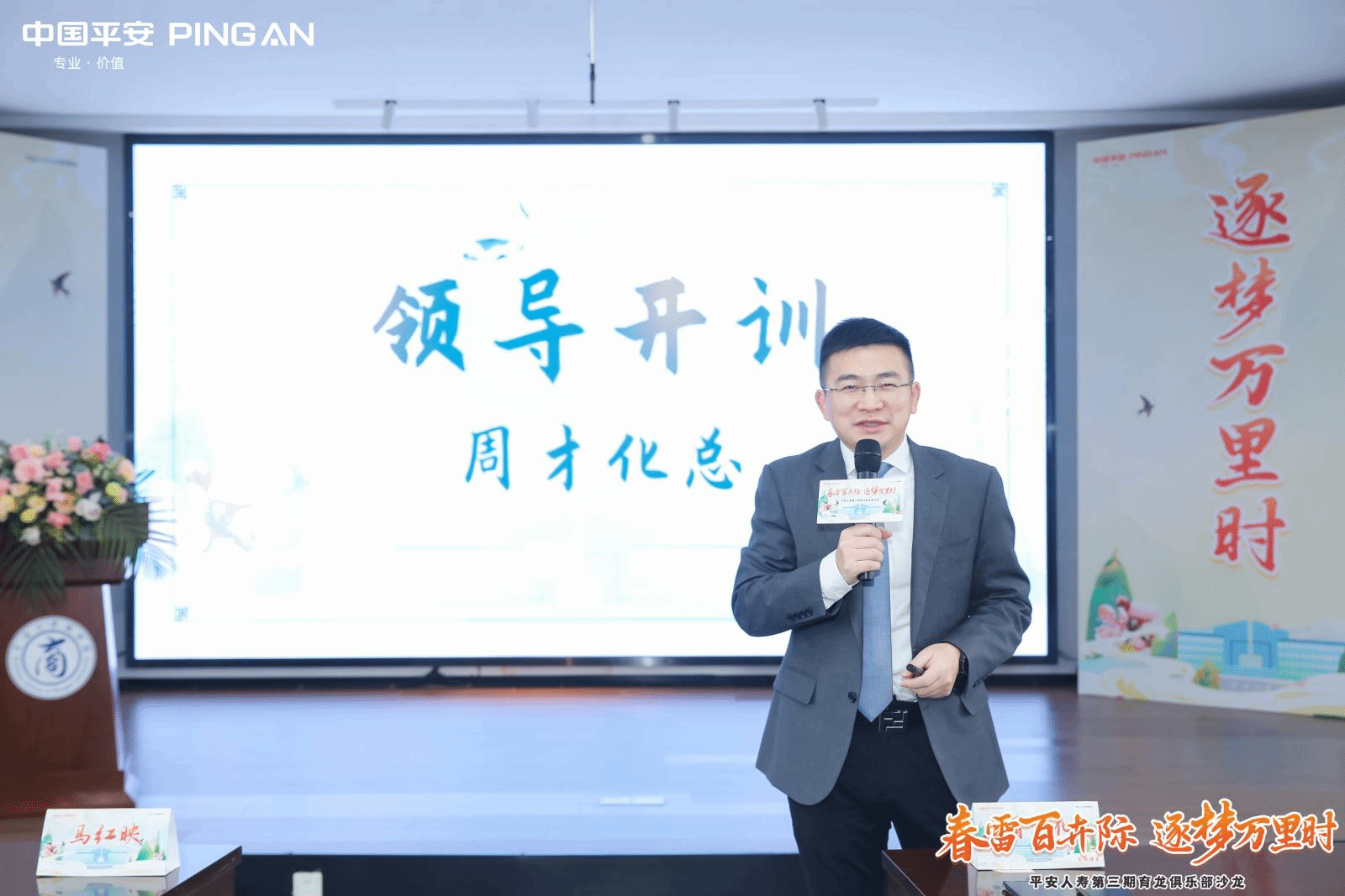 在经过简短的开班仪式后,由中国平安人寿保险股份有限公司宁波分公司副总经理周才化进行了简单的开训讲话并宣布本次培训课程正式开始,
