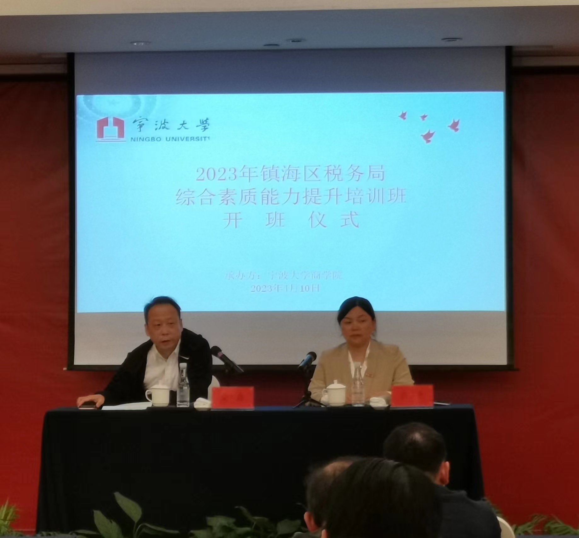 2023年4月10号下午,2023年镇海区税务局综合素质能力提升培训班(第一期)正式开班。十大菠菜网站 高培中心主任翁艳致欢迎词,国家税务总局宁波市镇海区税务局党委委员、副局长金鑫为全体学员进行了开班讲话。翁艳主任对镇海区税务局人员的到来表达了热烈的欢迎。金鑫副局长在开班讲话中对此次的学员培训的提出了具体的学习要求,希望各位学员认真学习,扩展自身视野,不断提高自身的综合素质。